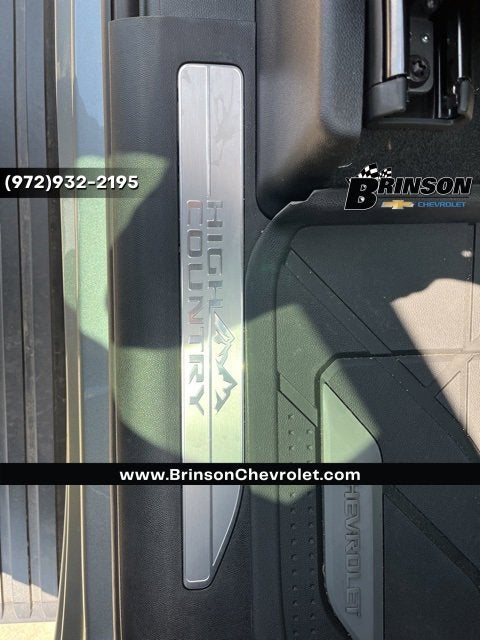 High Capacity Suspension Package, High Country Premium II Super Cruise Package (3 Years of OnStar Digital Services/Safety Services, Power-Retractable Assist Steps, Sport Wrapped Steering Wheel, and Super Cruise), High Country Premium Package (All-Weather Floor Liner (LPO), Power Sunroof, and Wheels: 22 x 9 Painted Aluminum), Preferred Equipment Group 3LZ (10-Way Power Driver Seat w/Lumbar, 10-Way Power Passenger Seat Adjuster w/Lumbar, 12.3 Multicolor Reconfigurable Digital Display, 120-Volt Bed Mounted Power Outlet, 120-Volt Interior Power Outlet, 2 USB Data Ports, 2nd Row Heated Outboard Seats, Adaptive Cruise Control, Auto-Locking Rear Differential, Bed View Camera, Body-Color Painted Mirror Caps, Chevytec Spray-On Black Bedliner, Chrome Assist Steps, Chrome Recovery Hooks, Color-Keyed Carpeting Floor Covering, Deep-Tinted Glass, Driver Memory, Dual Exhaust w/Polished Outlets, Floor Mounted Center Console, Front Carpeted Floor Mats, Front LED Fog Lamps, Front Rain-Sensing Wipers, HD Surround Vision, Heated Driver & Front Outboard Passenger Seats, Heated Steering Wheel, Hitch Guidance w/Hitch View, In-Vehicle Trailering System App, Integrated Trailer Brake Controller, Keyless Open & Start, LED Cargo Area Lighting, OnStar Services Capable, Outside Heated Power-Adjustable Mirrors, Perimeter Lighting, Power Front Passenger Windows w/Express Up/Down, Power Front Windows w/Driver Express Up/Down, Power Rear Windows w/Express Down, Power Sliding Rear Window w/Rear Defogger, Power Tailgate, Power Tilt & Telescoping Steering Column, Rear Carpeted Floor Mats, Rear Cross Traffic Braking, Rear Pedestrian Alert, Rear Wheelhouse Liners, Remote Vehicle Starter System, Safety Alert Seat, SiriusXM w/360L Trial Subscription, Standard Tailgate, Steering Wheel Audio Controls, Teen Driver, Theft Deterrent System, Trailer Camera Provisions, Trailer Side Blind Zone Alert, Ultrasonic Front & Rear Park Assist, Universal Home Remote, Ventilated Driver & Front Passenger Seats, Wi-Fi Hot Spot Capable, and Wrapped Steering Wheel), Technology Package (15 Diagonal Multicolor Head-Up Display and Rear Camera Mirror), Trailering Package (Hitch Guidance), Up-Level Rear Seat w/Storage Package, 10-Speed Automatic, 4WD, Jet Black Leather, 170 Amp Alternator, 3 Years SiriusXM, 3.23 Rear Axle Ratio, 4-Wheel Disc Brakes, 7 Speakers, ABS brakes, Adaptive Ride Control Suspension, Air Conditioning, Alloy wheels, AM/FM radio: SiriusXM with 360L, Apple CarPlay/Android Auto, Auto High-beam Headlights, Automatic temperature control, Bodyside moldings, Brake assist, Bumpers: body-color, Compass, Delay-off headlights, Driver door bin, Driver vanity mirror, Dual Active Exhaust, Dual front impact airbags, Dual front side impact airbags, Electronic Stability Control, Electronic Transmission Range Selector Shifter, Emergency communication system: OnStar, Enhanced Automatic Emergency Braking, Exhaust Calibration (LPO), Following Distance Indicator, Forward Collision Alert, Front anti-roll bar, Front Bucket Seats, Front Center Armrest, Front dual zone A/C, Front fog lights, Front Pedestrian Braking, Front reading lights, Front wheel independent suspension, Fully automatic headlights, Garage door transmitter, Genuine wood console insert, Genuine wood dashboard insert, Genuine wood door panel insert, Heated door mirrors, Heated front seats, Heated rear seats, Heated steering wheel, Illuminated entry, IntelliBeam Automatic High Beam On/Off, Lane Keep Assist w/Lane Departure Warning,