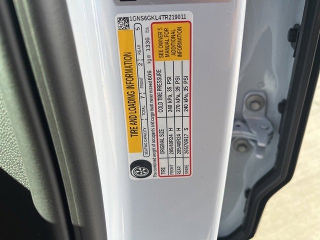 Advanced Security Package (Glass Breakage Sensor, Self-Powered Horn Theft-Deterrent Alarm System, Vehicle Inclination Sensor, and Vehicle Interior Movement Sensor), Advanced Trailering Package (Blind Zone Steering Assist with Trailering, Hitch View with Pan/Zoom Image Adjustment, and Smart Trailer Integration Indicator), High Country Deluxe (Air Ride Adaptive Suspension, Dual-Pane Power Panoramic Sunroof, and Power-Retractable Assist Steps), License Plate Front Mounting Package, Max Trailering Package (2-Speed Active Electronic AutoTrac Transfer Case, Extra Capacity Cooling System, Hill Descent Control, and Integrated Trailer Brake Controller), Preferred Equipment Group 3LZ (15 Diagonal Multi-Color Head-Up Display, 3rd Row 60/40 Power-Folding Split-Bench, 4-Way Power Driver Lumbar Seat Adjuster, 4-Way Power Front Passenger Lumbar Seat Adjuster, 8-Way Power Front Passenger Seat Adjuster, Bose 10-Speaker Surround with CenterPoint, Bright Front and Rear Door Sill Plates, Chrome Door Handles with Body-Color Strip, Dual Exhaust System, Front LED Fog Lamps, Heated 2nd Row Outboard Seats, Heated Driver and Front Passenger Seats, Heated Power-Adjustable Outside Mirrors, Heated Steering Wheel, Inside Rearview Auo-Dimming Rear Camera Mirror, Interior Camera, LED Headlamps with LED Daytime Running Lamps, LED Tail Lamps, Magnetic Ride Control Suspension, Memory Settings, Perforated Heated and Ventilated Seats, Power Release 2nd Row Bucket Seats, Power Tilt and Telescopic Steering Column, Power-Sliding Center Floor Console, Rear Power Liftgate, Universal Home Remote, Wheel Locks (set of 4), Wheels: 22 x 9 Bright Machined Aluminum, and Wireless Phone Charging), Premium Liner Protection Package (3rd Row All-Weather Floor Liners, All-Weather Cargo Mat, and First and Second Rows Premium Floor Liners), Technology & Entertainment Package (Rear Seat Media System), Technology Package (AutoSense Hands-Free Power Liftgate), 10 Speakers, 3.23 Rear Axle Ratio, 3rd row seats: split-bench, 4-Wheel Disc Brakes, 8-Way Power Driver Seat Adjuster, ABS brakes, Adaptive suspension, Air Conditioning, Alloy wheels, AM/FM radio: SiriusXM with 360L, Apple CarPlay/Android Auto, Auto High-beam Headlights, Auto-dimming door mirrors, Auto-dimming Rear-View mirror, Auto-leveling suspension, Automatic temperature control, Brake assist, Bumpers: body-color, Compass, Delay-off headlights, Driver door bin, Driver vanity mirror, Dual front impact airbags, Dual front side impact airbags, Electronic Stability Control, Emergency communication system: OnStar Services capable, Exterior Parking Camera Rear, Four wheel independent suspension, Front and Rear Black Bowtie Emblems, Front anti-roll bar, Front Bucket Seats, Front Center Armrest, Front dual zone A/C, Front fog lights, Front reading lights, Fully automatic headlights, Garage door transmitter, Heads-Up Display, Heated door mirrors, Heated front seats, Heated rear seats, Heated steering wheel, Illuminated entry, Low tire pressure warning, Memory seat, Navigation system: Google built-in compatibility (select service plan required, terms and limitations apply), Occupant sensing airbag, Outside temperature display, Overhead airbag, Overhead console, Panic alarm, Passenger door bin, Passenger vanity mirror, Perforated Leather Seating Surfaces, Power door mirrors, Power driver seat, Power Liftgate, Power passenger seat, Power steering, Power windows, Radio data system, Radio: 17.7 Diagonal Advanced Color LCD Display, Rain sensing wipers, Rear air conditioning, Rear anti-roll bar, Rear reading lights, Rear window defroster, Rear window wiper, Remote keyless entry, Security system, SiriusXM with 360L Trial Subscription, Speed control, Speed-sensing steering, Split folding rear seat, Spoiler, Steering wheel memory, Steering wheel mounted audio cont