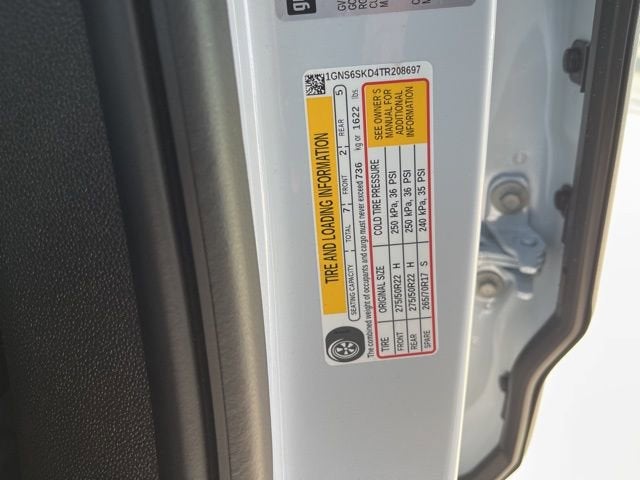 Advanced Trailering Package (Blind Zone Steering Assist with Trailering, Hitch View with Pan/Zoom Image Adjustment, and Smart Trailer Integration Indicator), License Plate Front Mounting Package, Max Trailering Package (2-Speed Active Electronic AutoTrac Transfer Case, Hill Descent Control, and Integrated Trailer Brake Controller), Preferred Equipment Group 1LZ (1st and 2nd Row Color-Keyed Carpeted Floor Mats, 20 x 9 Polished Aluminum Wheels, 3-Spoke Wrapped Steering Wheel, 3rd Row 60/40 Power-Folding Split-Bench Seat, Auto-Dimming Inside Rear-View Mirror, Bose 10-Speaker Centerpoint Surround Audio System Feature, Bright Front and Rear Door Sill Plates, Chrome Door Handles with Body-Color Strip, Chrome Mirror Caps, Color-Keyed Carpeting Floor Covering, Dual Exhaust System, Floor Console, Front Bucket Seats, Front LED Fog Lamps, Frontal Driver and Outboard Passenger Airbags, Heated 2nd Row Outboard Seats, Heated Steering Wheel, Interior Camera, Key Card, LED Headlamps with LED Daytime Running Lamps, LED Tail Lamps, Magnetic Ride Control Suspension, Memory Settings, Outside Heated Power-Adjustable Mirrors, Power Release 2nd Row Bucket Seats, Power Tilt and Telescopic Steering Column, Rear Power Liftgate, Remote Start, SiriusXM with 360L Trial Subscription, Universal Home Remote, and Wireless Phone Charging), Premium Liner Protection Package (3rd Row All-Weather Floor Liners, All-Weather Cargo Mat, and First and Second Rows Premium Floor Liners), Sun and Tow Package (Dual-Pane Power Panoramic Sunroof), 4WD, Black Leather, 10 Speakers, 3.23 Rear Axle Ratio, 3rd row seats: split-bench, 4-Way Power Driver Lumbar Seat Adjuster, 4-Way Power Front Passenger Lumbar Seat Adjuster, 4-Wheel Disc Brakes, 8-Way Power Driver Seat Adjuster, 8-Way Power Front Passenger Seat Adjuster, ABS brakes, Adaptive suspension, Air Conditioning, Alloy wheels, AM/FM radio: SiriusXM with 360L, Apple CarPlay/Android Auto, Auto High-beam Headlights, Auto-dimming door mirrors, Auto-dimming Rear-View mirror, Auto-leveling suspension, Automatic temperature control, Brake assist, Bumpers: body-color, Compass, Delay-off headlights, Driver and Front Passenger Heated and Ventilated Seats, Driver door bin, Driver vanity mirror, Dual front impact airbags, Dual front side impact airbags, Electronic Stability Control, Emergency communication system: OnStar and Chevrolet connected services capable, Exterior Parking Camera Rear, Extra Capacity Cooling System, Four wheel independent suspension, Front anti-roll bar, Front Center Armrest, Front dual zone A/C, Front fog lights, Front reading lights, Fully automatic headlights, Garage door transmitter, Heated door mirrors, Heated Driver and Front Passenger Seats, Heated front seats, Heated rear seats, Heated steering wheel, Illuminated entry, Low tire pressure warning, Memory seat, Navigation system: Google built-in compatibility (select service plan required, terms and limitations apply), Occupant sensing airbag, Outside temperature display, Overhead airbag, Overhead console, Panic alarm, Passenger door bin, Passenger vanity mirror, Perforated Leather Seat Trim, Power door mirrors, Power driver seat, Power Liftgate, Power passenger seat, Power steering, Power windows, Premium audio system: Chevrolet Infotainment 3 Premium, Radio data system, Radio: 17.7 Diagonal Advanced Color LCD Display, Rain sensing wipers, Rear air conditioning, Rear anti-roll bar, Rear reading lights, Rear window defroster, Rear window wiper, Remote keyless entry, Security system, Set of 4 Wheel Locks, Speed control, Speed-sensing steering, Split folding rear seat, Spoiler, Steering wheel memory, Steering wheel mounted audio controls, Tachometer, Telescoping steering wheel, Tilt steering wheel, Traction control, Trip computer, Turn signal indicator mirrors, Variably intermittent wipers,