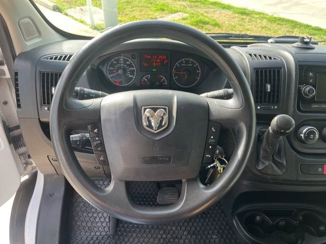 Bright White Clearcoat 2019 Ram ProMaster 1500 Low Roof FWD 6-Speed Automatic 3.6L V6 24V VVT Quick Order Package 21A, 12V Rear Auxiliary Power Outlet, 3.86 Axle Ratio, 4 Speakers, 4-Wheel Disc Brakes, 5.0 Touchscreen Display, ABS brakes, Additional Key Fobs (2), Air Conditioning, AM/FM radio, Bodyside moldings, Brake assist, Center Wheel Cap, Cloth Bucket Seats, Driver door bin, Dual front impact airbags, Dual front side impact airbags, Electronic Stability Control, Front anti-roll bar, Front Bucket Seats, Front License Plate Bracket, Front reading lights, Front wheel independent suspension, Illuminated entry, Integrated Voice Command w/Bluetooth®, Low tire pressure warning, Media Hub (USB, AUX), Media Input Hub, Medium Duty Suspension, MOPAR Cargo Area LED Lighting (DISC), Outside temperature display, Overhead airbag, ParkSense Rear Park Assist System, ParkView Rear Back-Up Camera, Passenger door bin, Power Folding/Heated Mirrors, Power steering, Power windows, Radio: Uconnect 3 w/5 Display, Remote keyless entry, Speed Control, Steering Wheel Mounted Audio Controls, Steering wheel mounted audio controls, Tachometer, Telescoping steering wheel, Traction control, Trip computer, Turn signal indicator mirrors, Variably intermittent wipers, and Wheels: 16 x 6.0 Steel.
