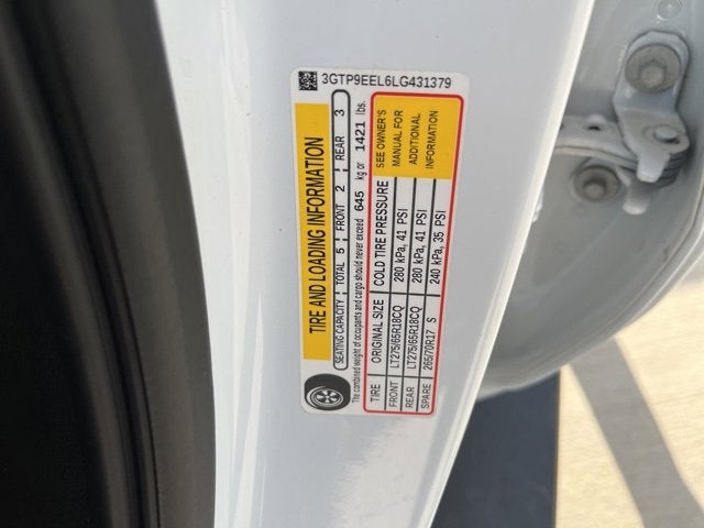 Summit White 2020 GMC Sierra 1500 AT4 4WD 10-Speed Automatic EcoTec3 6.2L V8 10-Speed Automatic, 4WD, Jet Black With Kalahari Accents Leather. AT4 Preferred Package (Power Sliding Rear Window w/Rear Defogger, Premium Bose 7-Speaker Sound System, Radio: Premium GMC Infotainment Sys w/Navigation, SiriusXM w/360L, Universal Home Remote, and Wireless Charging), AT4 Premium Package, Driver Alert Package I (Lane Change Alert w/Side Blind Zone Alert, Perimeter Lighting, Rear Cross Traffic Alert, and Ultrasonic Front & Rear Park Assist), Driver Alert Package II (Adaptive Cruise Control - Camera, Automatic Emergency Braking, Following Distance Indicator, Forward Collision Alert, Front Pedestrian Braking, IntelliBeam Automatic High Beam On/Off, Lane Keep Assist w/Lane Departure Warning, and Safety Alert Seat), Off Road Performance Package, Performance Upgrade Package (LPO) (Cat-Back Performance Exhaust (LPO) and Performance Air Intake System (LPO)), Preferred Equipment Group 4SB (12-Volt Rear Auxiliary Power Outlet, 120-Volt Bed Mounted Power Outlet, 120-Volt Instrument Panel Power Outlet, 170 Amp Alternator, 2 USB Ports, 2 USB Ports (1st Row), 4.2 Diagonal Color Display Driver Info Center, 4G LTE Wi-Fi Hotspot Capable, All-Weather Floor Liners w/AT4 Logo (LPO), Auxiliary External Transmission Oil Cooler, Body-Color Surround Grille, Color-Keyed Carpeting Floor Covering, Compass, Deep-Tinted Glass, Electric Rear-Window Defogger, Electrical Lock Control Steering Column, Floor-Mounted Center Console, GMC Connected Access Capable, HD Radio, HD Rear Vision Camera, Heated 2nd Row Outboard Seats, Heated Driver & Front Outboard Passenger Seating, Heavy-Duty Rear Locking Differential, High-Capacity Air Filter, Hill Descent Control, Hitch Guidance, Hitch Guidance w/Hitch View, In-Vehicle Trailering App, Integrated Trailer Brake Controller, Keyless Open & Start, LED Cargo Area Lighting, Manual Tilt-Wheel & Telescoping Steering Column, OnStar & GMC Connected Services Capable, Power Door Locks, Power Front Passenger Windows w/Express Up/Down, Power Front Windows w/Driver Express Up/Down, Power Rear Windows w/Express Down, ProGrade Trailering System, Rear Dual USB Charging-Only Ports, Rear Wheelhouse Liners, Red Recovery Hooks, Remote Vehicle Starter System, Spray-On Pickup Bed Liner w/AT4 Logo, Steering Wheel Audio Controls, Theft Deterrent System (Unauthorized Entry), and Ventilated Driver & Front Passenger Seats), Technology Package (8 Driver Information Center, Bed View Camera, HD Surround Vision w/2 Trailer View Camera Provisions, High Gloss Black Mirror Caps, Multicolor 15 Diagonal Head-Up Display, and Rear Camera Mirror), Trailering Package, 10-Speed Automatic, 4WD, Jet Black With Kalahari Accents Leather, 10-Way Power Driver Seat Adjuster w/Lumbar, 10-Way Power Passenger Seat Adjuster w/Lumbar, 18 x 8.5 Machined Aluminum Wheels, 3.23 Rear Axle Ratio, 4-Wheel Disc Brakes, 6 Speakers, 6-Speaker Audio System Feature, 6 Rectangular Black Tubular Assist Steps (LPO), ABS brakes, Air Conditioning, Alloy wheels, AM/FM radio: SiriusXM with 360L, Apple CarPlay/Android Auto, Auto-dimming door mirrors, Auto-dimming Rear-View mirror, Automatic temperature control, Brake assist, Bumpers: body-color, Delay-off headlights, Driver door bin, Driver Memory, Driver vanity mirror, Dual front impact airbags, Dual front side impact airbags, Electronic Stability Control, Front anti-roll bar, Front Bucket Seats, Front Center Armrest, Front dual zone A/C, Front fog lights, Front License Plate Kit, Front reading lights, Front wheel independent suspension, Fully automatic headlights, Heated door mirrors, Heated front seats, Heated rear seats, Heated steering wheel, Illuminated entry, Low tire pressure warning, Memory seat, Occupant sensing airbag, Off-Road Suspension, Outside temperature display, Overhead airbag, Overhead console, Panic alarm, Passenger door bin, Passenger vanity mirror, Perforated Leather-Appointed Front Seat Trim, Power door mirrors, Power drive