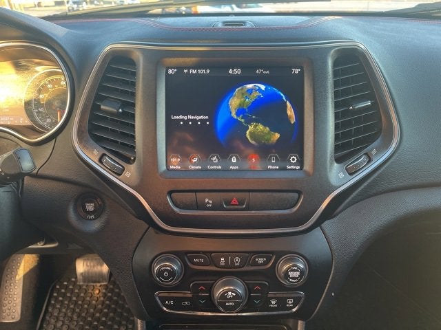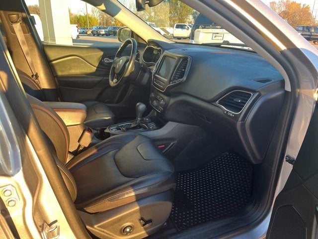 Billet Silver Metallic Clearcoat 2020 Jeep Cherokee Trailhawk 4WD 9-Speed 948TE Automatic 3.2L V6 Quick Order Package 27L Trailhawk Elite (Auto-Dimming Rear-View Mirror, Exterior Mirrors w/Memory, Hands-Free Power Liftgate, Heated Front Seats, Heated Steering Wheel, Leather Wrapped Steering Wheel, Power Front Driver/Passenger Seats, Premium Alpine Speaker System, Premium Leather Trimmed Bucket Seats, Radio/Driver Seat/Exterior Mirrors Memory, Remote Start System, Security Alarm, Tonneau Cover, Ventilated Front Seats, and Windshield Wiper De-Icer), 1-Year SiriusXM Guardian Trial, 3.517 Axle Ratio, 4-Wheel Disc Brakes, 4G LTE Wi-Fi Hot Spot, 5-Year SiriusXM Traffic Service, 5-Year SiriusXM Travel Link Service, 6 Speakers, 8.4 Touchscreen Display, ABS brakes, Air Conditioning, Alloy wheels, AM/FM radio: SiriusXM, Anti-whiplash front head restraints, Apple CarPlay, Apple CarPlay/Android Auto, Automatic temperature control, AutoStick Automatic Transmission, Auxiliary Transmission Oil Cooler, Brake assist, Cloth/Premium Vinyl Bucket Seats, Compass, Delay-off headlights, Driver door bin, Driver vanity mirror, Dual Bright Exhaust Tips, Dual front impact airbags, Dual front side impact airbags, Electronic Stability Control, Engine Oil Cooler, Exterior Mirrors Courtesy Lamps, Exterior Mirrors w/Supplemental Signals, For Details Visit DriveUconnect.com, Four wheel independent suspension, Front anti-roll bar, Front Bucket Seats, Front Center Armrest, Front dual zone A/C, Front fog lights, Front reading lights, Fully automatic headlights, Google Android Auto, GPS Antenna Input, GPS Navigation, HD Radio, Heated door mirrors, Hill Descent Control, Illuminated entry, Integrated Voice Command w/Bluetooth®, Knee airbag, Leather Shift Knob, Low tire pressure warning, Occupant sensing airbag, Off Road Suspension, Outside temperature display, Overhead airbag, Overhead console, Panic alarm, ParkView Rear Back-Up Camera, Passenger door bin, Passenger vanity mirror, Power door mirrors, Power driver seat, Power steering, Power windows, Radio data system, Radio: Uconnect 4 w/8.4 Display, Radio: Uconnect 4C Nav w/8.4 Display, Rear anti-roll bar, Rear reading lights, Rear seat center armrest, Rear side impact airbag, Rear window defroster, Rear window wiper, Remote keyless entry, Roof rack: rails only, SiriusXM Satellite Radio, SiriusXM Traffic Plus, SiriusXM Travel Link, Speed control, Speed-sensing steering, Split folding rear seat, Spoiler, Steering wheel mounted audio controls, Stop-Start Multiple VSM System, Tachometer, Telescoping steering wheel, Tilt steering wheel, Traction control, Trip computer, Turn signal indicator mirrors, USB Host Flip, Variably intermittent wipers, Voltmeter, and Wheels: 17 x 7.5 Painted Diamond Cut AluminuM.Odometer is 29734 miles below market average!