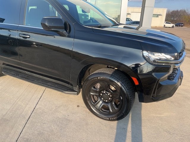 Black 2021 Chevrolet Tahoe Commercial Fleet RWD 10-Speed Automatic with Overdrive EcoTec3 5.3L V8 Black Cloth. License Plate Front Mounting Package, Preferred Equipment Group 1FL, Black Cloth, 2 USB Data Ports, 3.23 Rear Axle Ratio, 3rd Row Passenger Seat Delete, 3rd row seats: split-bench, 4-Wheel Disc Brakes, 6 Speakers, 6-Speaker Audio System Feature, ABS brakes, Air Conditioning, Alloy wheels, AM/FM radio, Apple CarPlay/Android Auto, Automatic temperature control, Brake assist, Bumpers: body-color, Compass, Delay-off headlights, Driver door bin, Driver vanity mirror, Dual front impact airbags, Dual front side impact airbags, Electronic Stability Control, Emergency communication system: OnStar and Chevrolet connected services capable, Extra Capacity Cooling System, Four wheel independent suspension, Front 40/20/40 Split-Bench Seat, Front anti-roll bar, Front Center Armrest, Front dual zone A/C, Front reading lights, Fully automatic headlights, Heated door mirrors, Illuminated entry, Low tire pressure warning, Not Equipped w/Automatic Stop/Start, Occupant sensing airbag, Outside temperature display, Overhead airbag, Overhead console, Panic alarm, Passenger door bin, Passenger vanity mirror, Power door mirrors, Power driver seat, Power passenger seat, Power steering, Power windows, Premium audio system: Chevrolet Infotainment System 3, Premium Cloth Seat Trim, Premium Smooth Ride Suspension, Radio: Chevrolet Infotainment 3 System, Rain sensing wipers, Rear air conditioning, Rear anti-roll bar, Rear reading lights, Rear seat center armrest, Rear window defroster, Rear window wiper, Remote keyless entry, Roof rack: rails only, Security system, Speed control, Speed-sensing steering, Split folding rear seat, Spoiler, Steering wheel mounted audio controls, Tachometer, Telescoping steering wheel, Tilt steering wheel, Traction control, Trip computer, Variably intermittent wipers, Voltmeter, and Wheels: 18 x 8.5 Bright Silver Painted Aluminum.