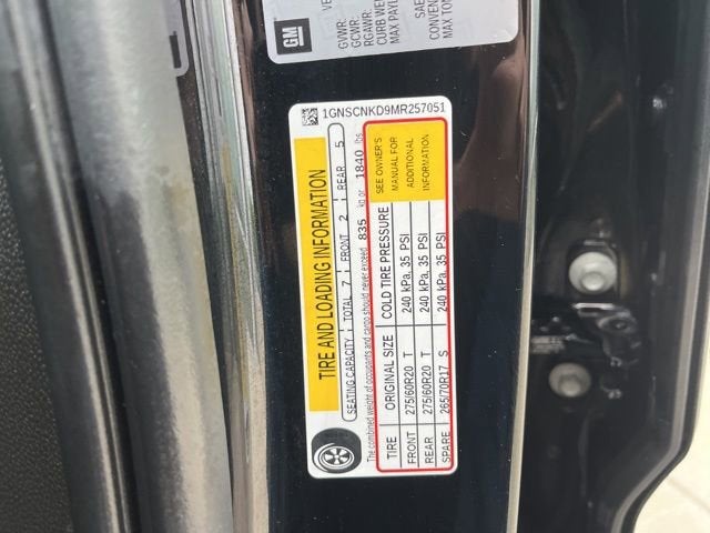 Black 2021 Chevrolet Tahoe LT RWD 10-Speed Automatic with Overdrive EcoTec3 5.3L V8 Black Leather. License Plate Front Mounting Package, Preferred Equipment Group 1LT (1st & 2nd Row Color-Keyed Carpeted Floor Mats, 2 USB Data Ports, Auto-Dimming Inside Rear-View Mirror, Bright Front & Rear Door Sill Plates, Color-Keyed Carpeting Floor Covering, Driver & Front Outboard Passenger Airbags, Floor Console w/Storage Area, Hands-Free Rear Power Programmable Liftgate, HD Radio, Infotainment Display, Leather-Wrapped Steering Wheel, LED Daytime Running Lamps, Memory Settings for Driver, Remote Start, SiriusXM Radio w/360L, and Universal Home Remote), Black Leather, 10-Way Power Driver & Passenger Seat Adjusters, 2nd Row Manual Bucket Seats, 3.23 Rear Axle Ratio, 3rd row seats: split-bench, 4-Wheel Disc Brakes, 9 Speakers, ABS brakes, Air Conditioning, Alloy wheels, AM/FM radio: SiriusXM with 360L, Apple CarPlay/Android Auto, Auto High-beam Headlights, Auto-dimming Rear-View mirror, Automatic temperature control, Bose 9-Speaker Stereo Audio System Feature, Brake assist, Bumpers: body-color, Compass, Delay-off headlights, Driver door bin, Driver vanity mirror, Dual front impact airbags, Dual front side impact airbags, Electronic Stability Control, Emergency communication system: OnStar and Chevrolet connected services capable, Four wheel independent suspension, Front anti-roll bar, Front Bucket Seats, Front Center Armrest, Front dual zone A/C, Front High-Back Reclining Bucket Seats, Front reading lights, Fully automatic headlights, Garage door transmitter, Heated door mirrors, Heated Driver & Front Passenger Seats, Heated front seats, Illuminated entry, Leather Seat Trim, Leather steering wheel, Low tire pressure warning, Memory seat, Occupant sensing airbag, Outside temperature display, Overhead airbag, Overhead console, Panic alarm, Passenger door bin, Passenger vanity mirror, Power door mirrors, Power driver seat, Power Liftgate, Power passenger seat, Power steering, Power windows, Premium audio system: Chevrolet Infotainment 3, Premium Smooth Ride Suspension, Radio: Chevrolet Infotainment 3 Plus System, Rain sensing wipers, Rear air conditioning, Rear anti-roll bar, Rear reading lights, Rear seat center armrest, Rear window defroster, Rear window wiper, Remote keyless entry, Roof rack: rails only, Security system, Speed control, Speed-sensing steering, Split folding rear seat, Spoiler, Steering wheel mounted audio controls, Tachometer, Telescoping steering wheel, Tilt steering wheel, Traction control, Trip computer, Variably intermittent wipers, Voltmeter, Wheels: 18 x 8.5 Bright Silver Painted Aluminum, and Wheels: 20 x 9 Painted Aluminum.