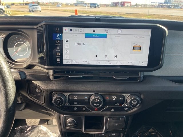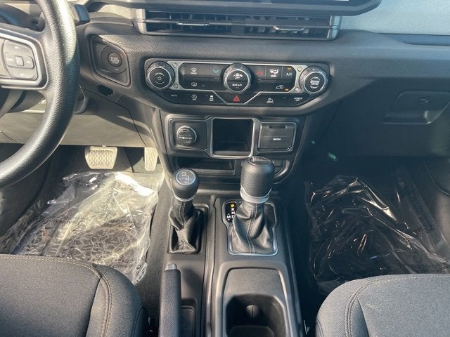 Granite Crystal Metallic Clearcoat 2024 Jeep Gladiator Sport 4WD 8-Speed Automatic 3.6L V6 24V VVT Max Tow Package w/4.10 Axle Ratio (110 MPH Vehicle Max Speed Calibration, 240 Amp Alternator, 4.10 Rear Axle Ratio, and Class IV Receiver Hitch), Quick Order Package 24B Sport, Trailer Tow & Aux Switch Group (Auxiliary Switches and Trailer Hitch Zoom), 12.3 Touchscreen Display, 4-Wheel Disc Brakes, 4G LTE Wi-Fi Hot Spot, 8 Speakers, ABS brakes, Air Conditioning, Alexa Built-In, AM/FM radio: SiriusXM with 360L, Apple CarPlay, Apple CarPlay/Android Auto, Black 3-Piece Hard Top, Brake assist, Cloth Low-Back Bucket Seats, Compass, Connectivity - US/Canada, Delay-off headlights, Disassociated Touchscreen Display, Driver door bin, Driver vanity mirror, Dual front impact airbags, Dual front side impact airbags, Electronic Stability Control, Emergency communication system: Jeep Connect, Front anti-roll bar, Front Bucket Seats, Front Center Armrest w/Storage, Front fog lights, Front License Plate Bracket, Front reading lights, Google Android Auto, Integrated Center Stack Radio, Integrated roll-over protection, Low tire pressure warning, MOPAR All-Weather Slush Mats, Normal Duty Suspension, Occupant sensing airbag, Outside temperature display, Overhead airbag, ParkView Rear Back-Up Camera, Passenger door bin, Passenger vanity mirror, Power steering, Radio data system, Radio: Uconnect 5 w/12.3 Display, Rear anti-roll bar, Rear reading lights, SiriusXM Radio Service, SiriusXM w/360L, Speed control, Split folding rear seat, Steering wheel mounted audio controls, Tachometer, Telescoping steering wheel, Tilt steering wheel, Traction control, Trip computer, USB Host Flip, Variably intermittent wipers, Voltmeter, and Wheels: 17 x 7.5 Black Steel Styled.
